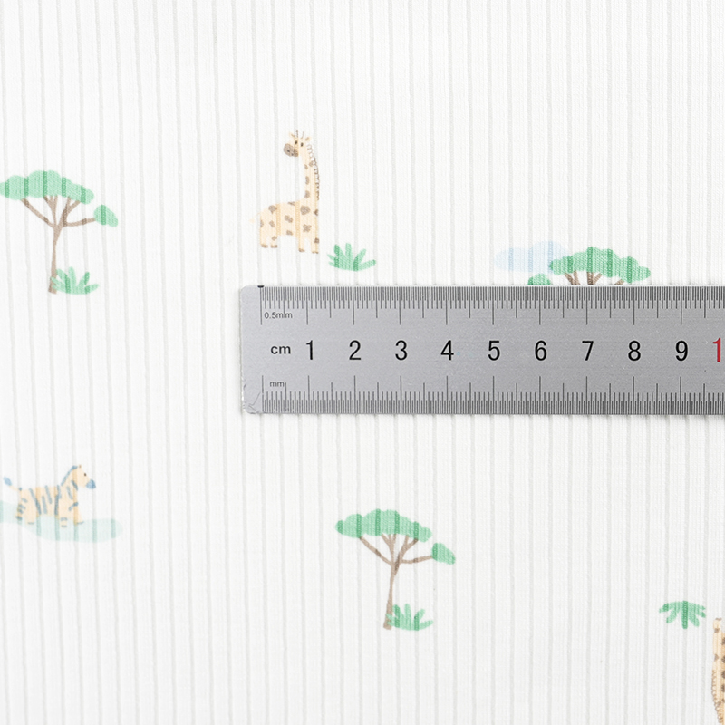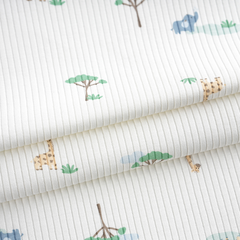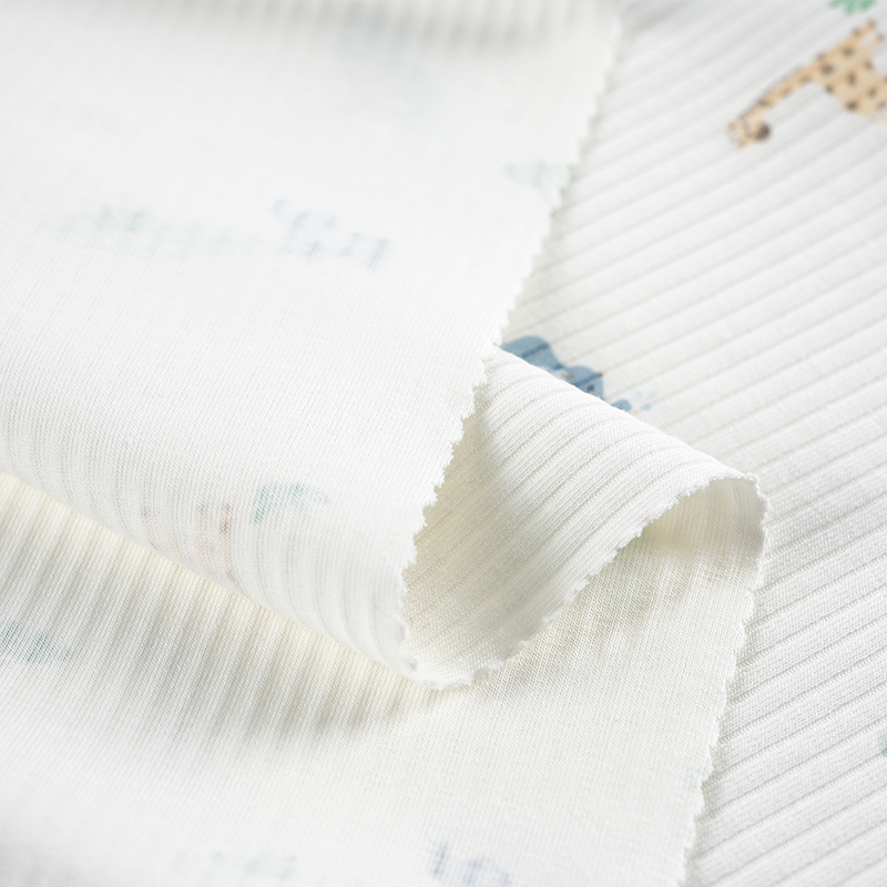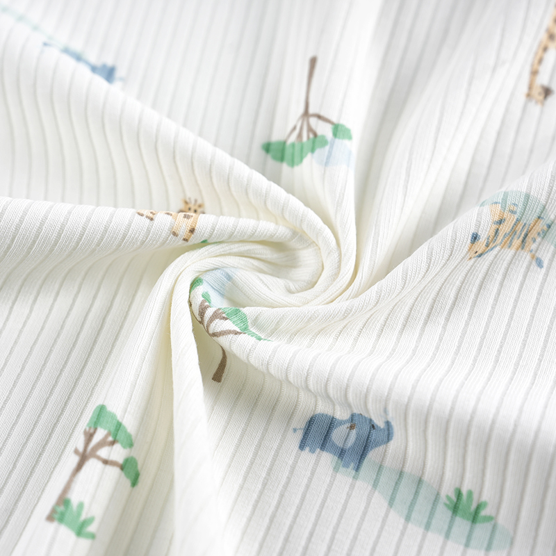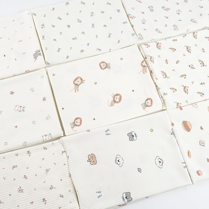 Cartoon Print Ribbed Cotton Spandex Knitted Stretch Fabric for Autumn And Winter Baby Rompers And Loungewear