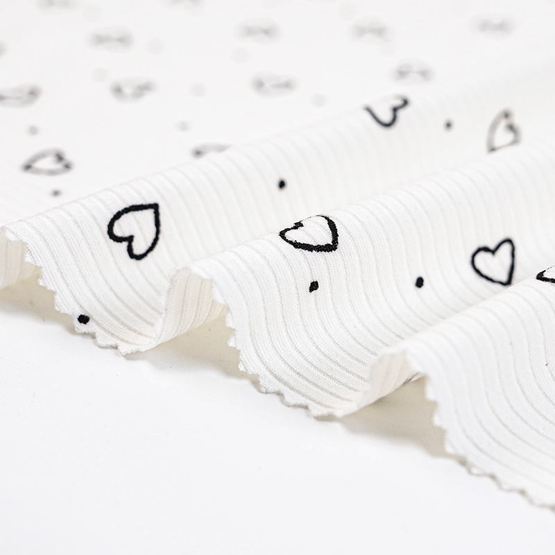 Jacquard Rib Knit Fabric with Heart Pattern Polyester-Spandex Stretch Knitted Fabric for Baby Rompers And Women's Camisole Nightwear