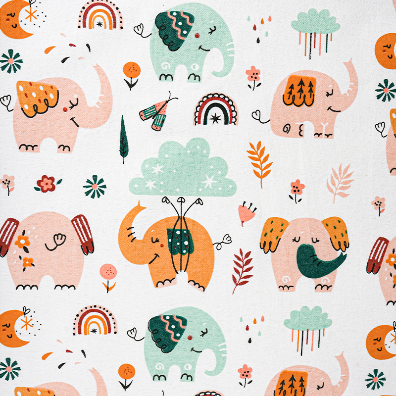 70%Bamboo30%C Printed Single Jersey Fabric-Fox Baby Elephant